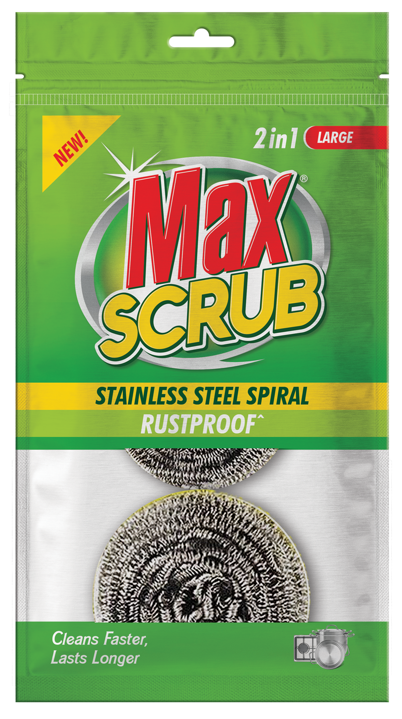 Max Scrub Stainless Steel Spiral Scrubbers are tough, durable, and rustproof. Perfect for removing grease and grime from pots, pans, and kitchen surfaces. With a strong spiral design, they clean deeply and last longer, making everyday dishwashing easier and more effective