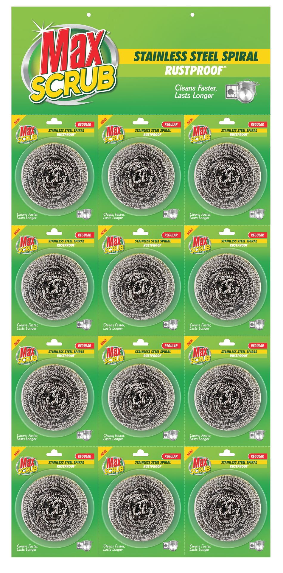 Max Scrub Stainless Steel Spiral Scrubbers are tough, durable, and rustproof. Perfect for removing grease and grime from pots, pans, and kitchen surfaces. With a strong spiral design, they clean deeply and last longer, making everyday dishwashing easier and more effective
